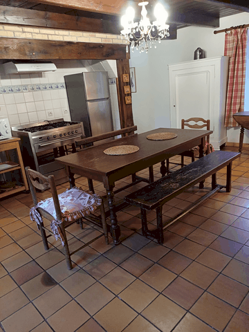 1 grande cuisine et salon autour de la cheminée centrale avec insert.