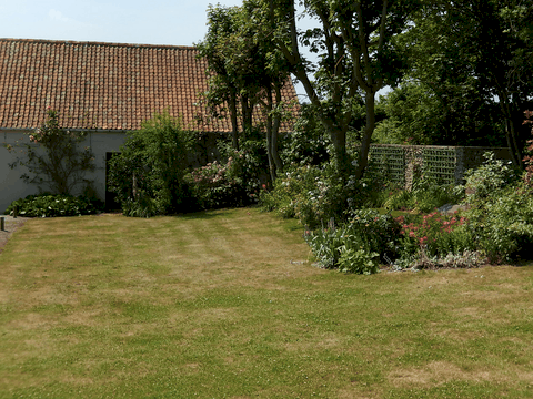 Elle est entourée d'espaces verts (1300 m² env.) avec arbres , massifs et pelouses.