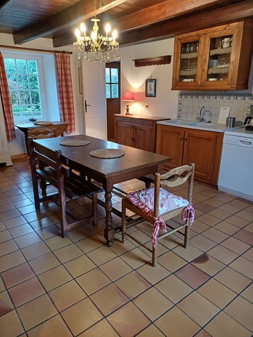 1 grande cuisine et salon autour de la cheminée centrale avec insert.