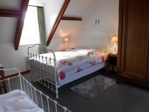 Elle comporte 4 chambres : 2 de 2p. et 2 de 3p. , 1 chambre en rez de chaussée et les 3 autres à l' étage.