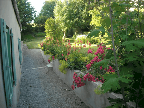 Elle est entourée d'espaces verts (1300 m² env.) avec arbres , massifs et pelouses.